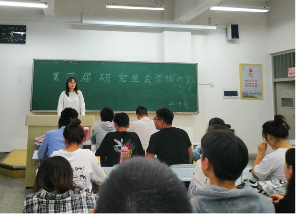 2021年9月11日下午2:30,理学院研究生会在彭家坪校区观成楼101教室召开了理学院第五届研究生会总结大会。会议由第五届研会主席姜美杨主持,全体成员参加了此次会议。