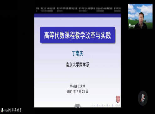 应兰州理工大学理学院邀请,南京大学数学系系主任秦厚荣教授,丁南庆教授和东南大学陈建龙教授于7月21日下午2:00在腾讯会议作线上报告。理学院王永铎教授主持了报告会,相关专业师生参会。