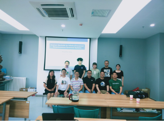 杨健夫教授,严树森教授及王荣年教授分别做了题为《Improved Sobolev inequalities and critical problems》、《Non-degeneracy of multi-bubbling solutions for the prescribed scalar curvature equations and applications》、《Theory of Invariant Manifolds for Infinite-dimensional Nonautonomous Dynamical Systems and Applications》的精彩学术报告。报告结束后,三位教授就与会师生提出的相关问题作了详细的解答,同时就共同关心的话题,如基金申报等问题进行了交流。通过此次学习交流,一方面让相关研究生了解了当前的学术前沿及热点,同时也加强了与同行之间的学术交流。