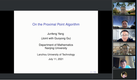 2021年7月11日,兰州理工大学理学院举办了2021年数值代数与最优化学术报告会(线上腾讯会议)。本次会议邀请了来自国内高校的数值代数和最优化算法领域的8位知名专家作报告,校内外相关专业的很多老师和研究生参加了此次报告会。