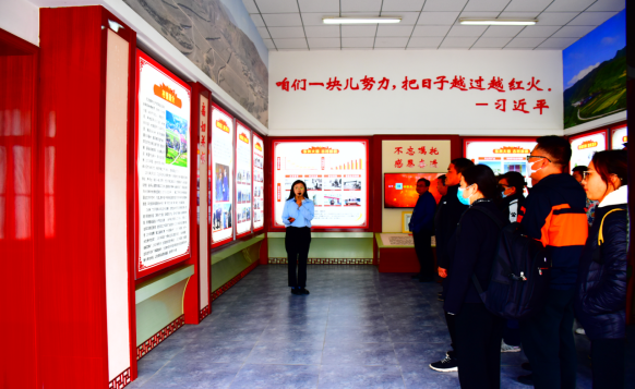 当天上午,党员同志们走进村史馆,在讲解员的带领下,详细了解了元古堆村坚决打赢脱贫攻坚战的奋斗历程。习近平总书记视察该村时曾说:“咱们一块儿努力,把日子越过越红火。”在党建引领和社会各界的支持下,元古堆村干部群众努力奋斗,旧貌换新颜,交通显著改善、产业不断振兴、医疗保障完备,人民生活脱贫奔小康。大家在参观过程中感触良多,对向乡村振兴事业满怀信心。