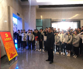 同学们列队有序,庄严肃静的进入纪念馆,聆听在工作人员的讲解,大家了解到在兰州战役中,兰州人民和解放军一起积极抢修黄河铁桥,保证部队迅速西进,追击残敌,革命先烈身先士卒,不惧强敌,团结一心,为中华民族的崛起奉献了自己的生命。随后,在杨书记的领读下同学们进行了入党誓词宣誓,鼓励同学们向先烈学习,为建设祖国,为共产主义奋斗终身。
