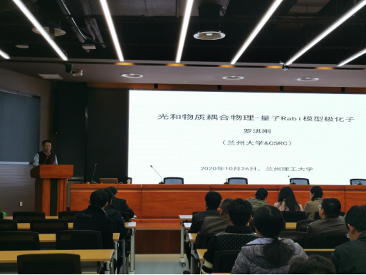 首先,罗洪刚教授作了题为《光和物质耦合物理-量子Rabi模型极化子》的学术报告。报告中,罗教授介绍了量子Rabi模型(QRM)的发展进程,对QRM模型的基本组成进行了分析,展示了使用变分波函数提出的QRM中变形极化子和反极化子的图像。在此基础上,讨论了基态能量及其可观测性、波函数相位图的变化等。报告结束后,物理系师生就自己的研究方向同罗教授进行了探讨,罗教授就做基础研究的特点和乐趣分享给了大家,并就双方团队的进一步合作提出了很好的建议。随后,罗洪刚教授与物理系教师开展了学科专业建设交流座谈会,会议由理学院党委李建东书记主持。会上,罗老师就物理学科发展建设做了深入介绍,并就理学院应用物理系的建设工作提出了宝贵建议。