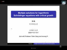 夏健康和帅伟两位博士分别做了题为《非线性Choquard方程的变号解》、《Multiple solutions for logarithmicSchrodinger equations with critical growth》的精彩学术报告。
