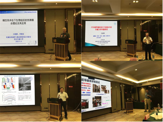 其次,兰州理工大学何天虎教授针对多孔介质的广义热弹性理论与应用做了精彩报告,通过引入孔洞夹杂的体积分数,建立了描述多孔介质的广义热弹性理论,并针对具体的问题展开了详细研究。针对超导材料与结构在应用过程中的关键力学问题,近物所的关明智副研究员、兰州理工大学的赵玉峰教授、杨育梅副教授分别进行了精彩的报告,分析了超导重离子加速器中与超导磁体相关的力学问题,详细讨论了高温超导涂层相关的力-电-磁多场耦合行为。针对微纳机电系统中的小尺寸效应、周期结构中的波动行为、磁敏智能材料的力磁耦合、热弹扩散耦合等工程力学前言问题以及普遍关注的多场耦合问题,兰州交通大学的史拴虎、李晨琳,兰州理工大学的顾春龙、高伟,西安交通大学的李妍等青年教师相继作了专题学术报告。与会人员与各位参会嘉宾积极进行交流与讨论,大会在热烈的学术讨论中落下帷幕。