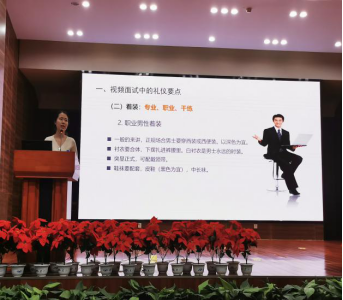 接着,马文静老师做了《求职面试礼仪》培训,指导学生如何在疫情影响下的视频面试中脱颖而出;苗军老师做了《简历——求职的敲门砖》培训,强调了求职过程中一份好简历的重要性。在场学生对报告内容深有感触。