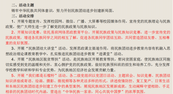 学院牢牢把握政策要求,结合学生实际精心设置设置了两套民族知识竞赛试题,每套试题总分100分,线上答题限时50分钟。经过认真准备和动员,同学们的积极参与、认真答题,老师认真阅卷、综合考量,民族团结月的知识竞赛环节受到同学们的欢迎,取得了良好教育交流效果。通过此次竞赛,引导学生对民族知识和民族政策以及民族团结等方面的知识有了增长和积累,提高了学生的政治意识和民族认同感,为之后学校举办的民族知识竞赛做了知识储备,增强了同学们的挑战信心。