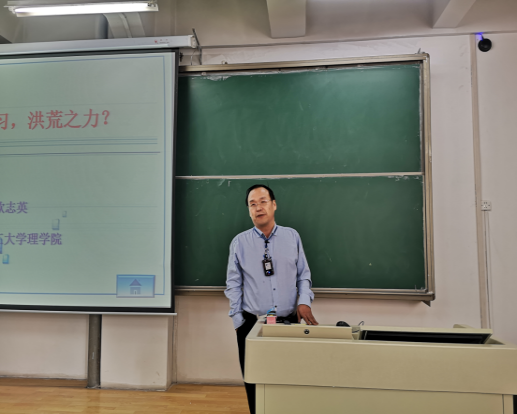 为让新生尽快适应大学生活,掌握大学学习的方法,理学院院长欧志英教授于2019年10月15日早上10点整在彭家坪校区2号楼206教室作题目为“大学学习,洪荒之力”的报告,出席报告会的有党委刘振宇副书记、辅导员安星老师,理学院2019级全体新生参加,刘书记副书记主持会议。