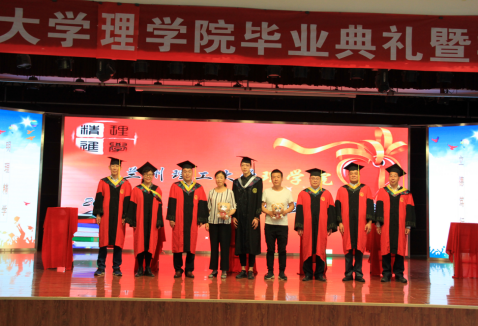 毕业典礼在雄壮国歌中拉开帷幕。首先欧志英院长宣读学校关于2019年春季学期授予普通本科学士学位和硕士学位的决定;李建东书记宣读学校关于表彰2019届优秀毕业生的决定;王青副院长宣读理学院关于表彰2018-2019学年度优秀毕业生和就业先进工作者的决定。宣读完毕后,导师代表为本科生、研究生授予学位,学生依次上台,导师代表向优秀毕业生颁发荣誉证书,王全进副校长向校友班级联络员颁发聘书,并与各位毕业生合影留念。
