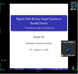 唐仲伟教授,郭千桥教授分别做了题为《Sharp Sobolev inequalities involving boundaryterms revisited》、《Negative Power Nonlinear Integral Equations on Bounded Domains》的精彩学术报告。报告结束后,两位报告人详细解答了师生提出的相关问题,同时就共同关心的话题,如疫情期间如何搞好教学及研究等问题进行了交流。通过此次学习交流,一方面让相关研究生了解了当前的学术前沿及热点,同时也加强了与同行之间的学术交流。