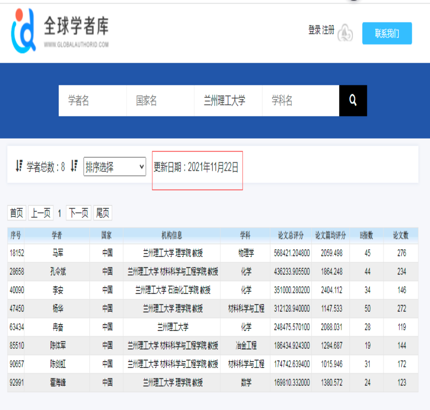 近日,全球学者库网站公布了“全球顶尖前10万科学家排名”,该名单国内共有11790人入围,仅次于美国(38368人),位居第二位。兰州理工大学共有8位教授入选全球顶尖科学家,其中理学院有3位教授马军、杨华、霍海峰三名教师同时入选。