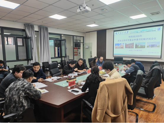 为进一步提升2026年国家自然科学基金申请质量,3月7日上午,理学院物理系组织校内外专家在文理楼539会议室集中评阅了基金申请书。评阅会邀请中国科学院兰州近代物理研究所研究员马新文,兰州大学教授王建波等5人为校外评阅专家。理学院马军教授等7位教授为校内评审专家。通过集体评阅和面对面反馈,为申请教师提供精准指导和修改意见。